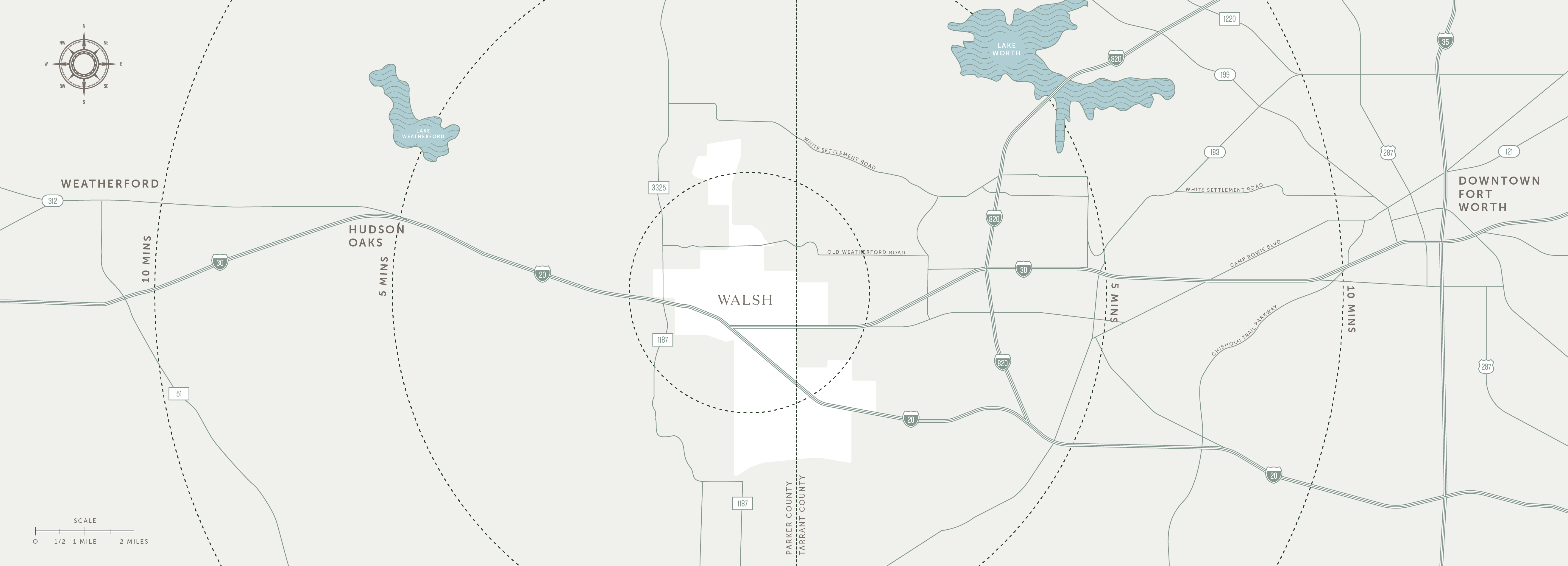 Walsh exhibits the finest traits of community and civic thinking. Located in fast-growing Fort Worth, the 7,200-acre development is one of the largest of its kind in a major U.S. city. Walsh includes commercial development, residential neighborhoods, and mixed-use areas. Dedicated open spaces ensure neighborhoods, corporate campuses, tenants, visitors, and residents will enjoy the unique topography and beautiful views of downtown Fort Worth for decades to come.